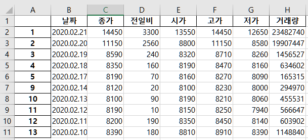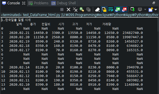 print("1.한국알콜 일별 시세\n", df[0], "\n\n")