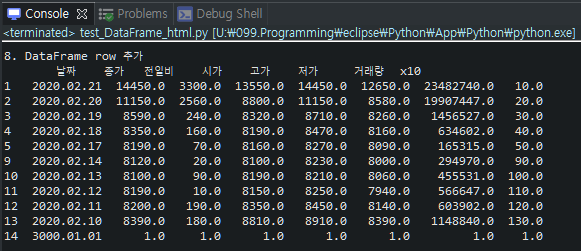 print("9.1 전체 row 호출\n", df[0], "\n\n")