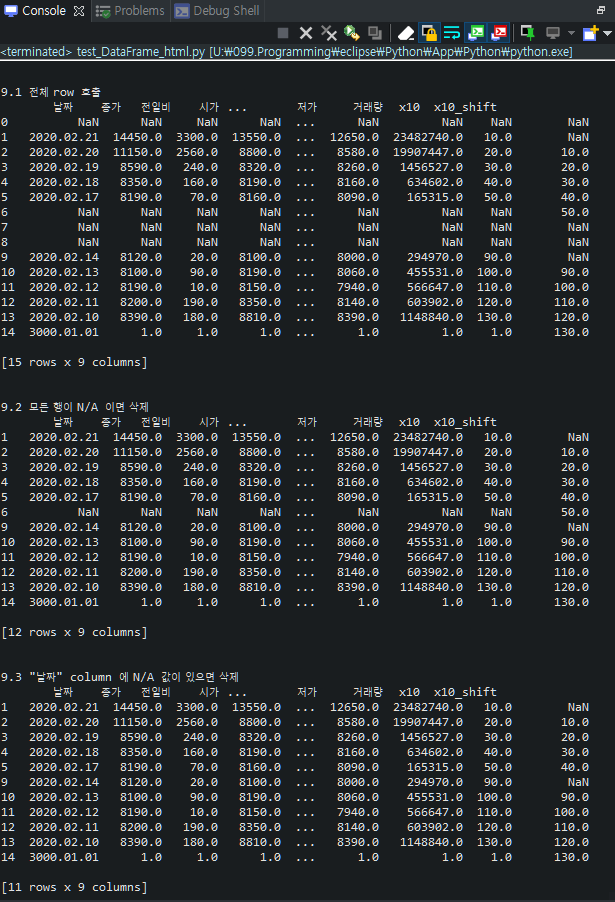 print("실행 안됨", dfs.dropna(axis=0)["날짜"], "\n\n")