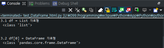 #----- 3. df 는 List 형, df[0] 은 DataFrame 형 자료